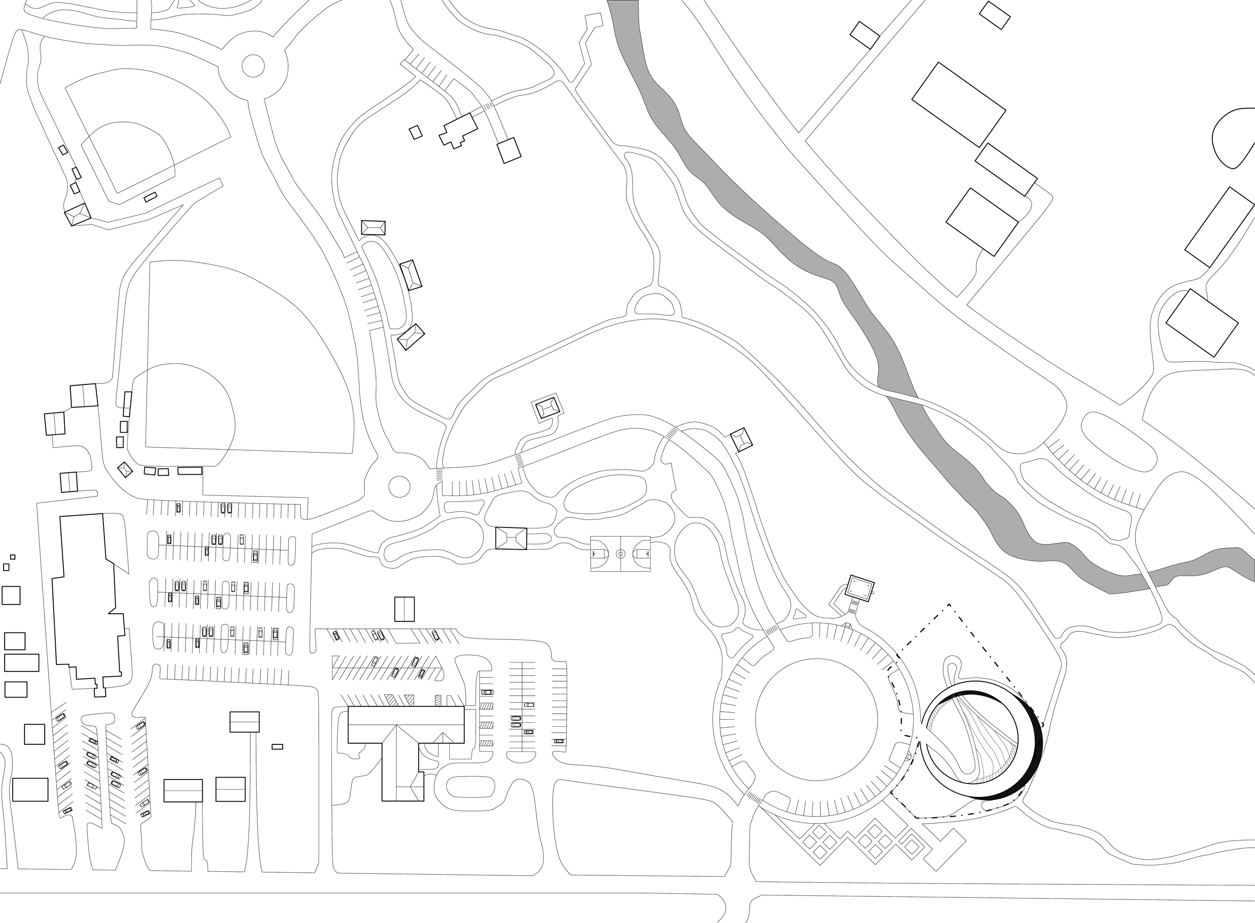 Tri Ân Monument suggests to present the simple notion that our everyday life is indebted to all who served and sacrificed in the past fighting for freedom. Walking on the cantilevered platform (the bridge circulating back to the point of beginning) represents the current life, full of joy and gratitude. These are supported by diverse columns, poles, wires with different sizes and colors, which represents all who fought together. Some of them are very weak and thin, which still seemingly attempt to support the heavy platform on top of them. Many of these structural and nonstructural objects also imply many unknown people who died and suffered. It looks too thin to support the weight but, the act of memorialization envisions them as key effort supporting who we are now, people standing above the platform. In the construction of this act of memorialization, the row of main center columns are fully supporting the platform from which thin poles and wires are tensionally tied between top and bottom. Each columns are dedicated to people, country, army, unknown fighters and the sacrificed. Engraved names, texts, images and QR codes will invite people to learn, while people can also participate in tying ribbon to the thin columns, walking through those sacred memories. Tri Ân Monument is our statement that the idea, action and sacrifice in the past have built the present and our current actions will support the future, the freedom of our living.